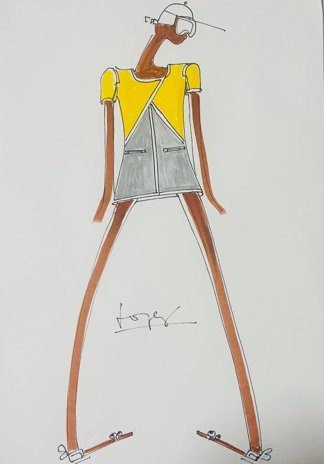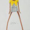 Boceto original , » Vestido amarillo y gris corto, linea A »