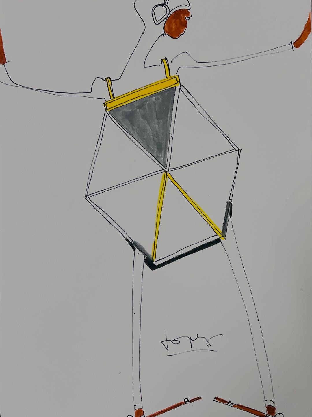 Boceto original , » Vestido corto de noche, gris y amarillo»