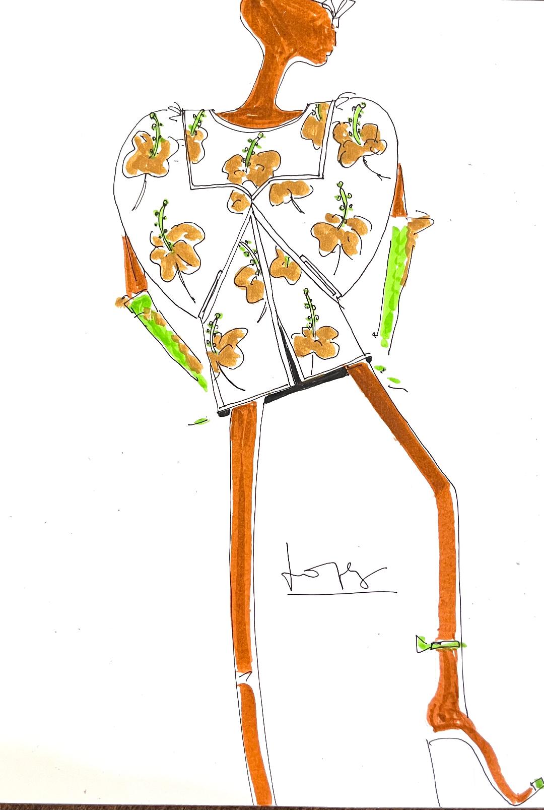 Boceto original , » Vestido de noche hibiscus»