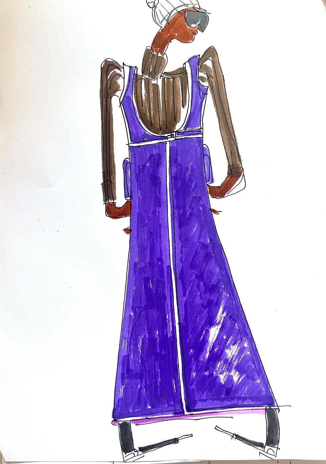 Croquis original, » Robe d’hiver avec col roulé châtaigne »